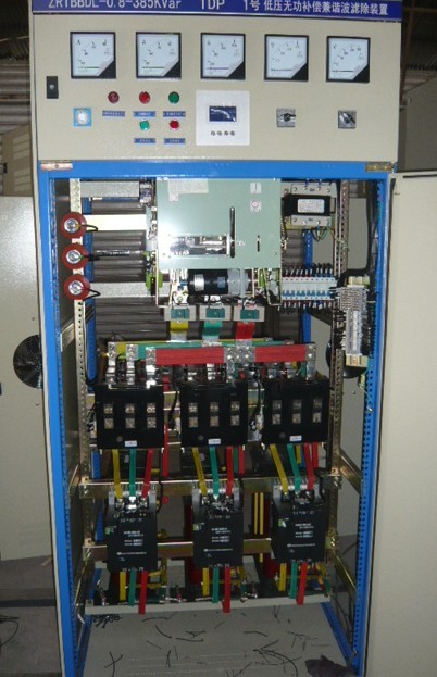 浙江能容电力设备有限公司研制生产的低压谐波滤除装置是专用于低压电网3次、5次、7次、11次、13次及以上的谐波无源滤波装置。适用于点焊机,电焊机设备等的环境。该装置采用了电感和电容器组成串联谐振吸收回路,有效的将负载产生的谐波加以吸收,从而避免将谐波电流返送到电力变压器,大大降低电网的谐波量,同时有利于用户电力变压器的运行,降低功耗,提高设备和其它电器组件的可靠性。此外该设备还提供一定容量的无功功率补偿,提高用户负载的运行效率。该装置分综合控制柜和电抗柜,视用户要求不同,配置的滤除谐波次数也不同。通常一套ZRTBBL系统可滤除4种谐波。系统的操作可分自动运行和手动操作。