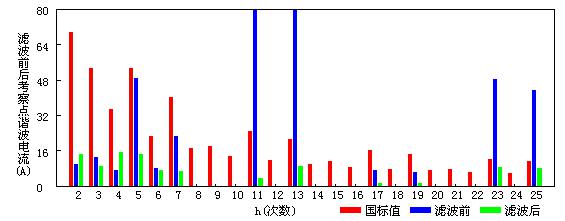 投入滤波器前后考察点谐波电流的比较